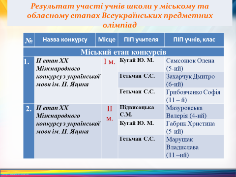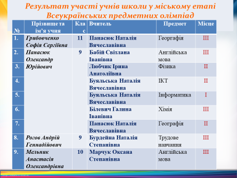 Звіт про проведення І етапу Всеукраїнських предметних олімпіад 2023/2024 н.р.