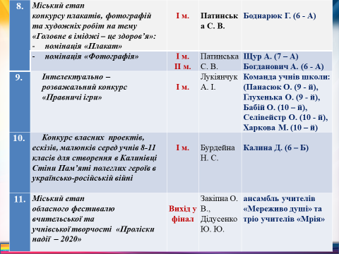 Звіт про успішність учнів за 2019-2020 навчальний рік.