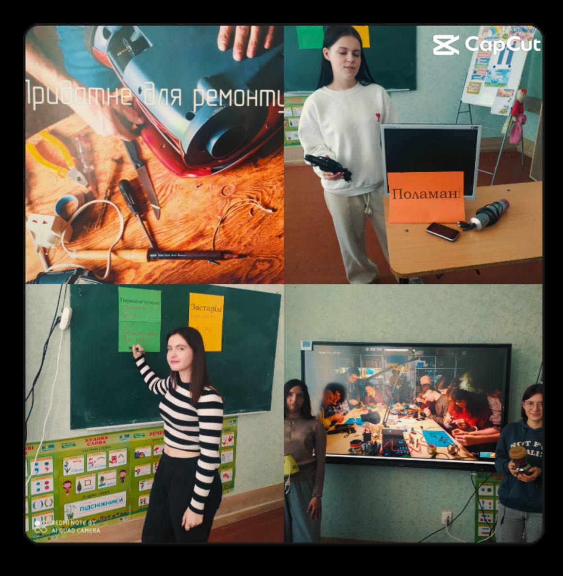 9-ті класи Урок-обговорення "Придатне для ремонту" Учні занурились у глобальну проблему електронних відходів та дізналися про шляхи їх свідомої переробки.