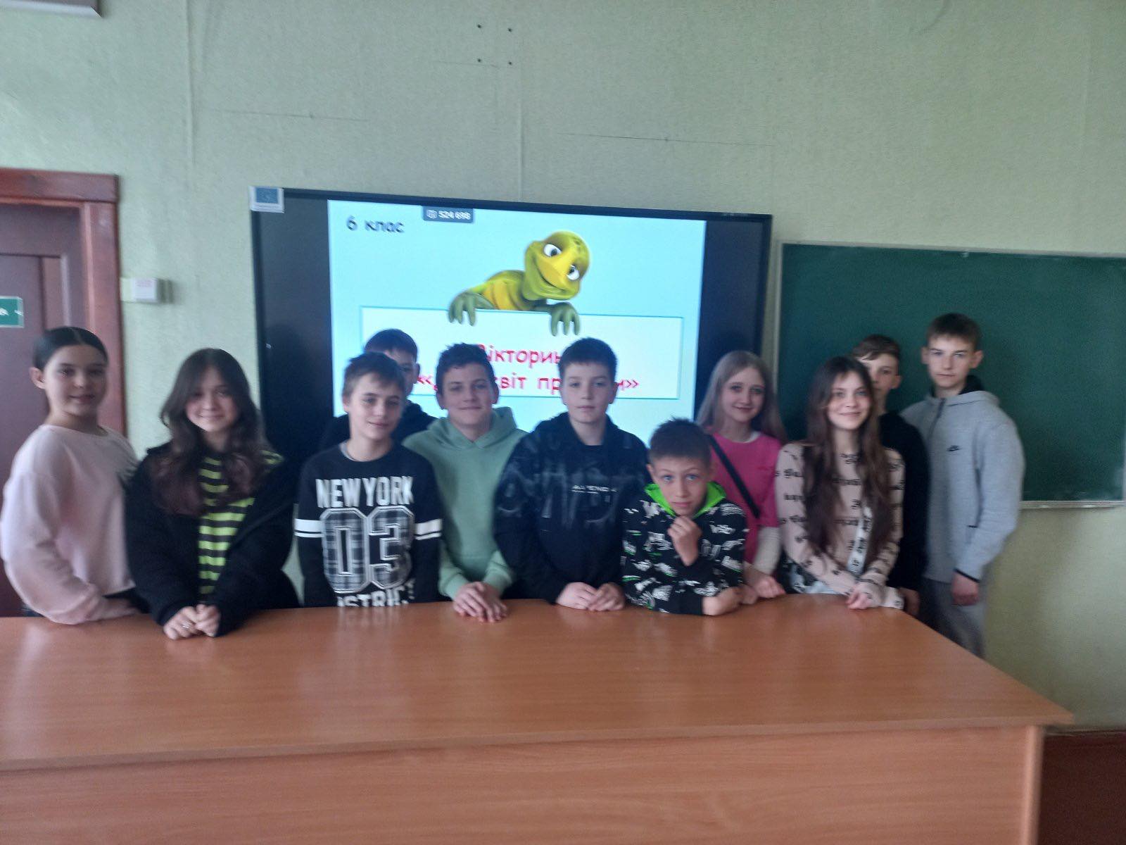 6-Б клас Вікторина "Ми і світ природи" — цікава мандрівка світом природи! Учні повторили закони природи, особливості рослин і тварин через ребуси, анаграми та пізнавальні запитання.