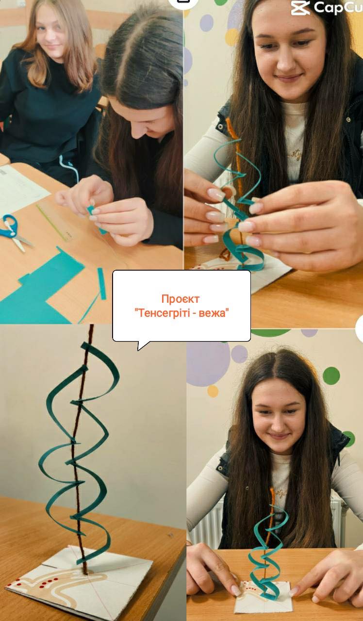 Здобувачі освіти із захопленням поринули у світ проєктної діяльності — креативної, пізнавальної та захоплюючої! Будували "Тенсегріті-вежі" — конструкції, які наче суперечать законам гравітації! Це не просто моделі — це наука, що оживає в руках дітей! Проєктували та випробовували "Двоколісне авто" — ідеї, розрахунки, конструкція, а потім тест-драйв! Тут і фізика, і математика, і логіка — в дії!