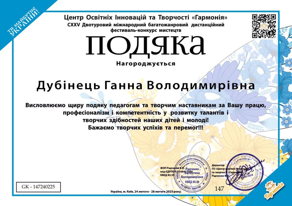 Хай у наших серцях завжди живе любов до України, віра в перемогу, сила єдності та незламність духу.