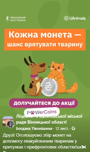 Наш заклад освіти бере участь в акції зі збору монет #PowerCoins, яку організовують Національний банк України та UAnimals — організація, що рятує тварин і довкілля від війни та людської жорстокості.