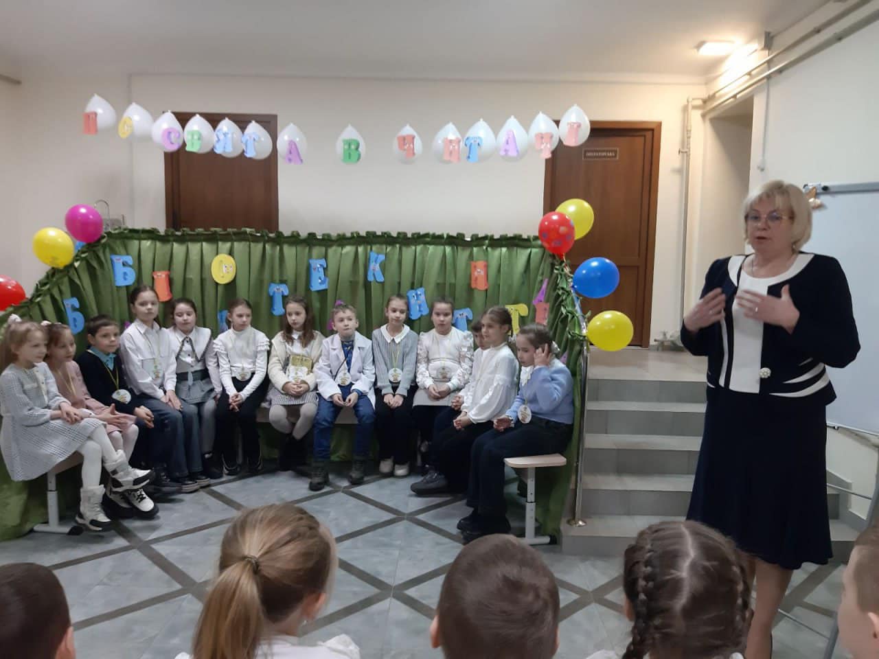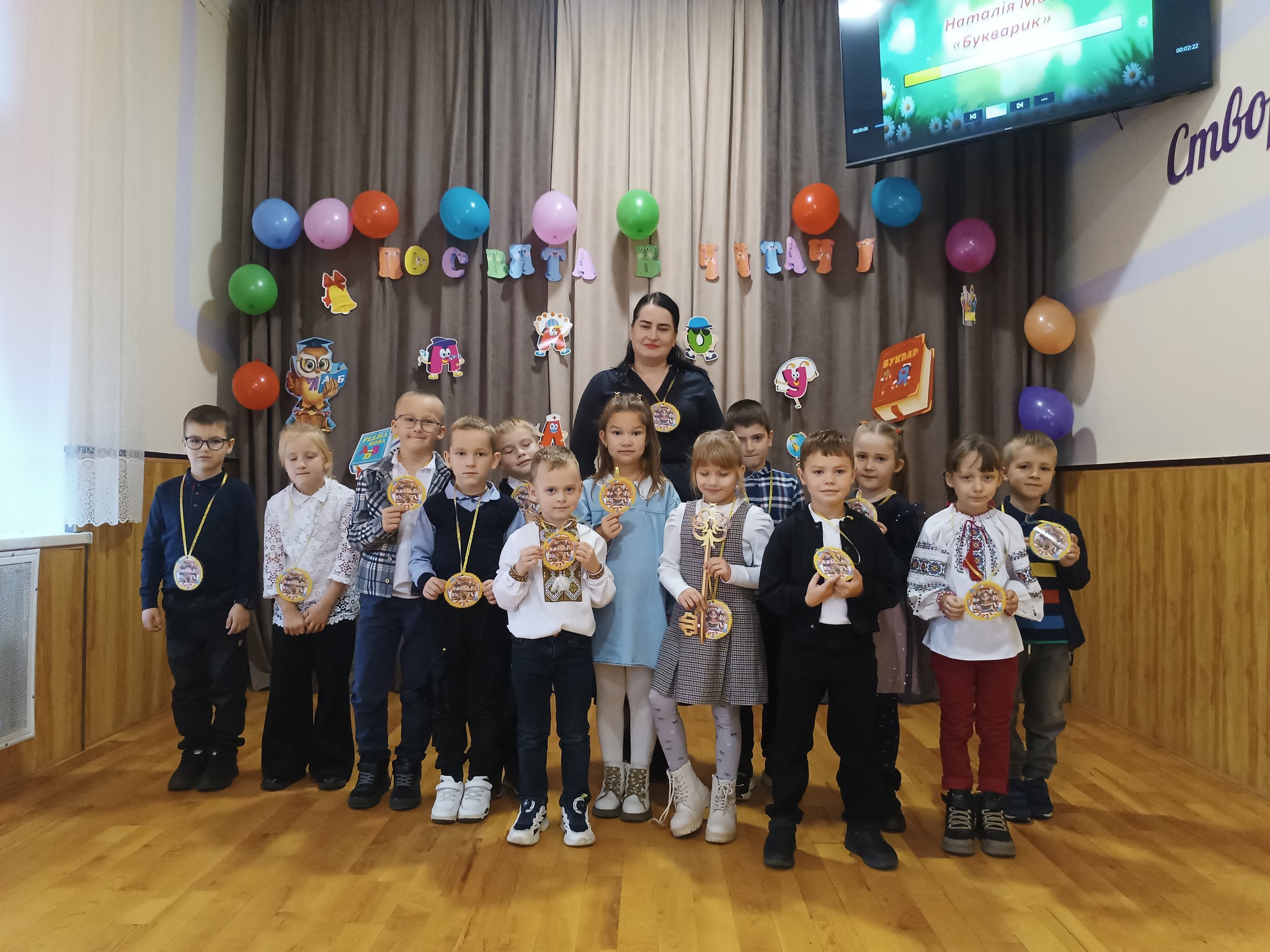 Бібліотекарка Галина Черняховська разом із учнями 4-А класу підготували для малечі чудову святкову програму: читали вірші, співали пісні, даруючи молодшим школярам гарний настрій . А першокласники відгадували загадки, впізнавали казкових героїв і довели, що готові стати справжніми читачами