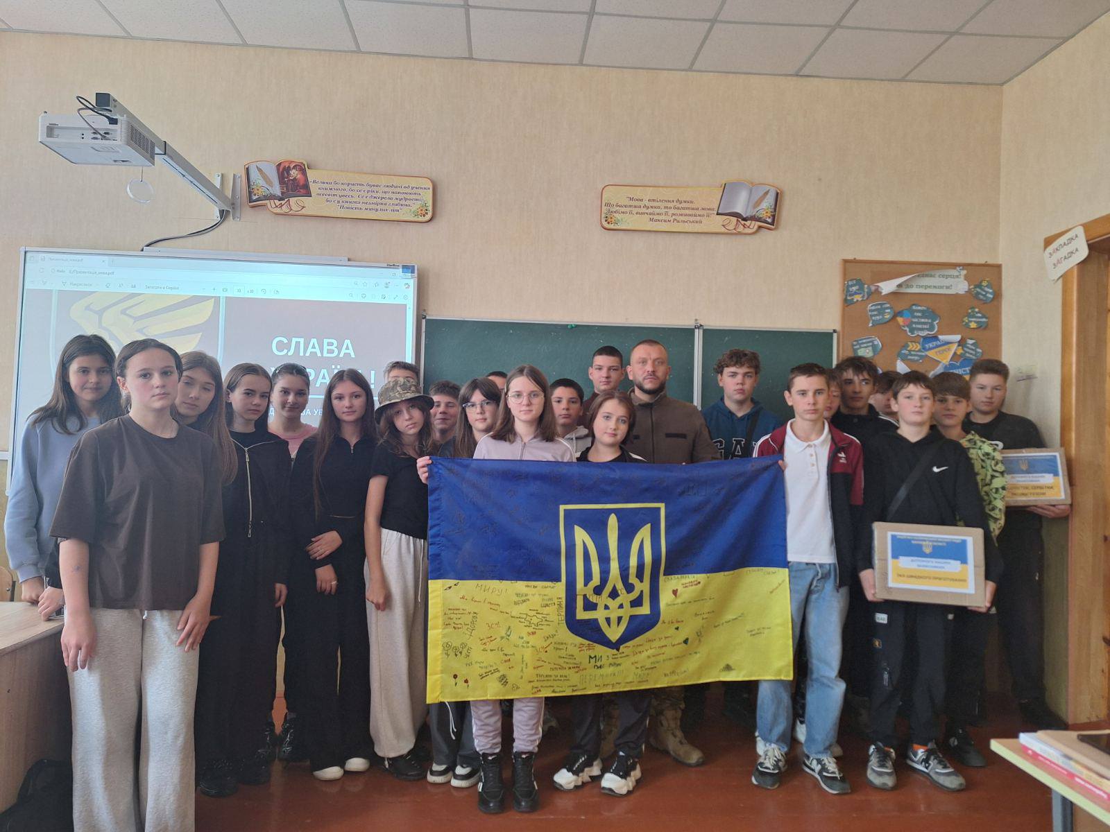 зібрану допомогу. У цей момент у класі панували справжні емоції, адже всі відчули, що кожен із нас робить важливий внесок у спільну справу – Перемогу України!