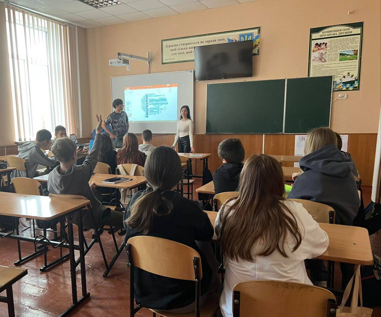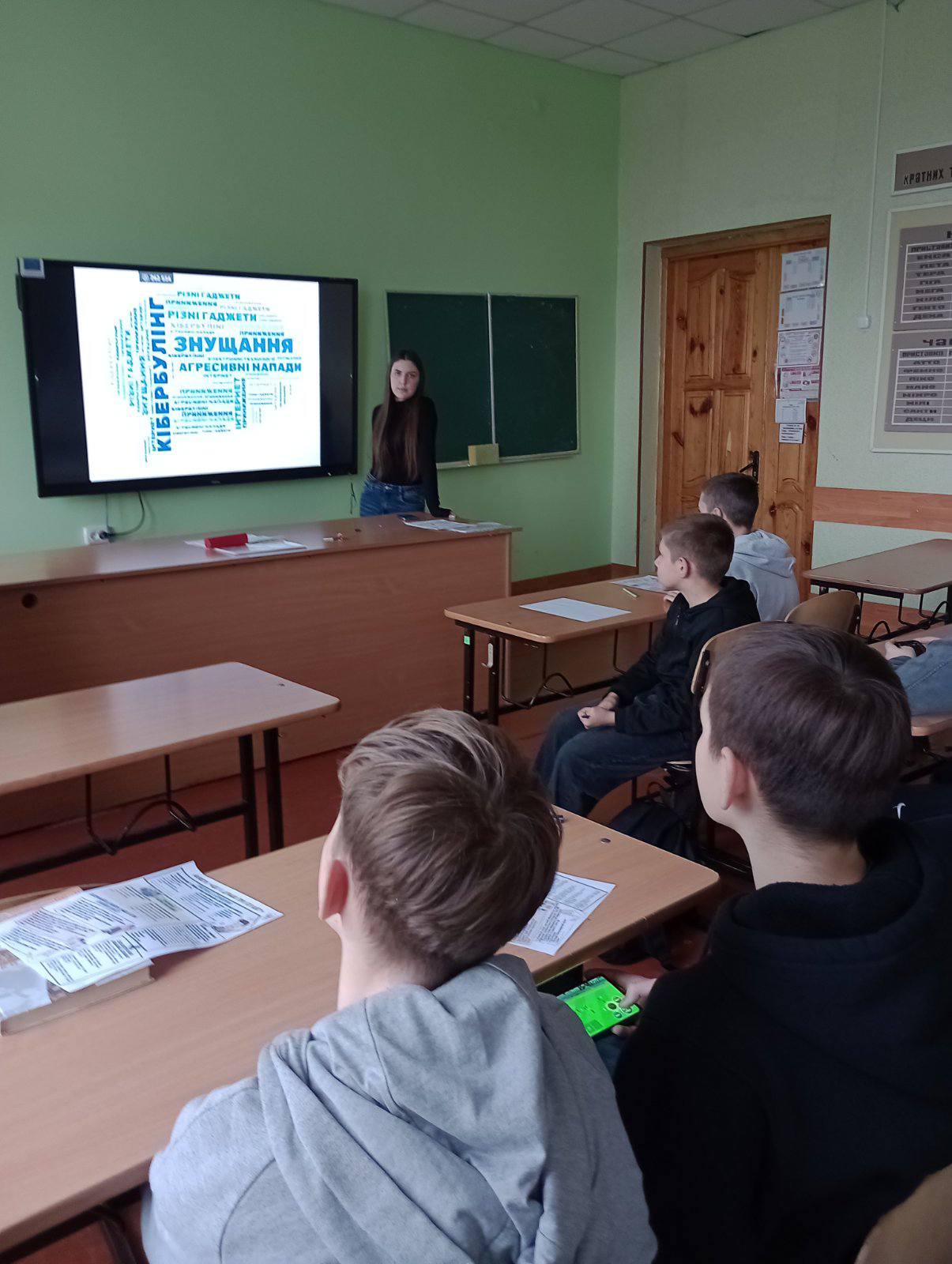 У межах акції "16 днів проти насильства" члени гуртка "Вирішуємо конфлікти мирним шляхом" під керівництвом практичної психологині Лариси Андрієвської організували лекторій "Кібербулінг, або Агресія в інтернеті". Десятикласники розказали учням 7-А і 7-Б класів про форми цього виду насильства та поінформували їх про шляхи та способи його уникнення.