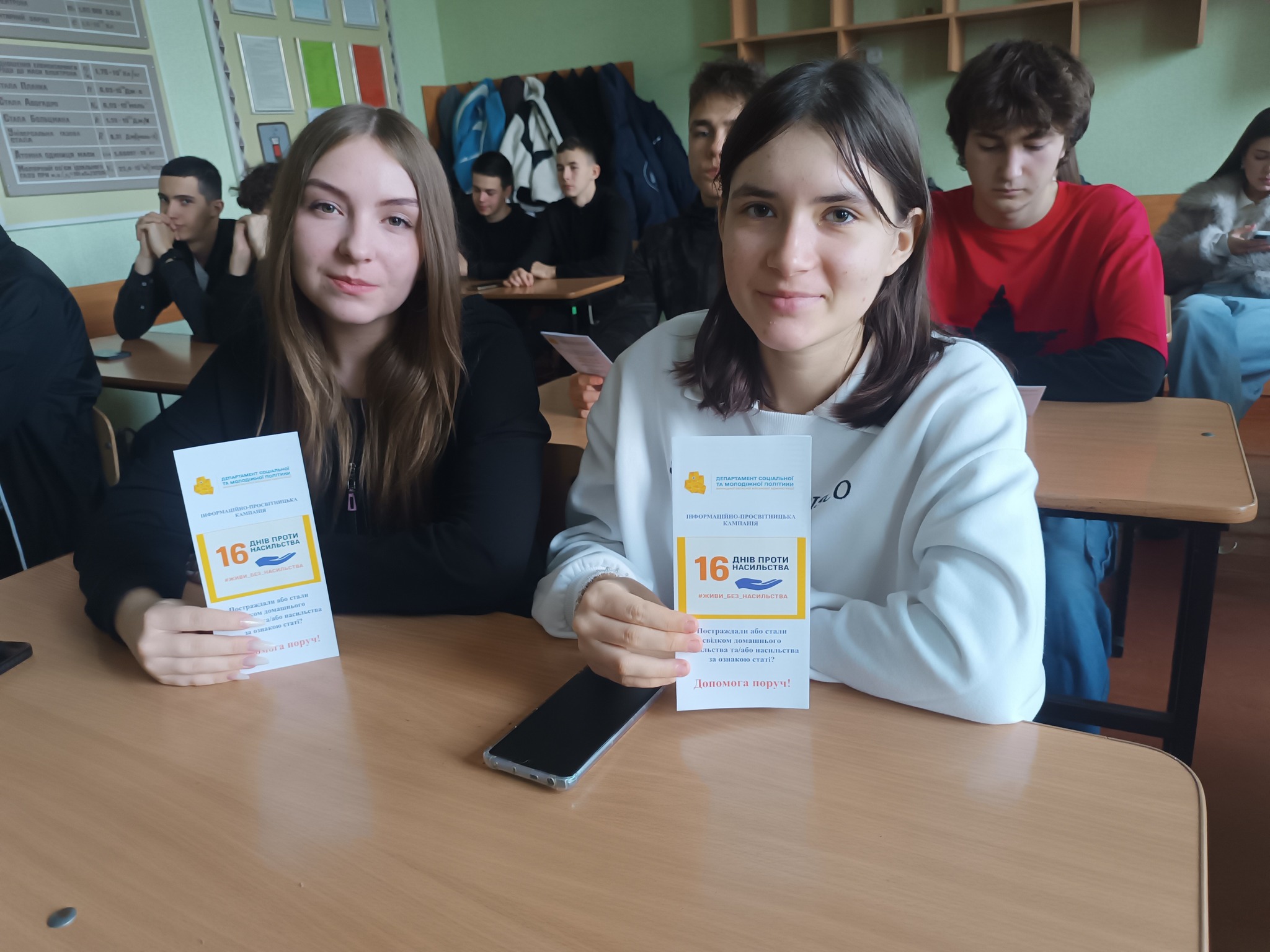 26 листопада до нашого ліцею завітали завідувач відділення соціальної служби сім’ї, дітей та молоді Вдовиченко Юрій Олександрович та поліцейський офіцер громади, майор поліції Сучак Олександр Олександрович. Разом з інспекторкою СОБ, лейтенанткою поліції Діаною Смірновою, вони провели зустріч із учнями, яка стала важливою частиною Всеукраїнської акції «16 днів проти насильства».